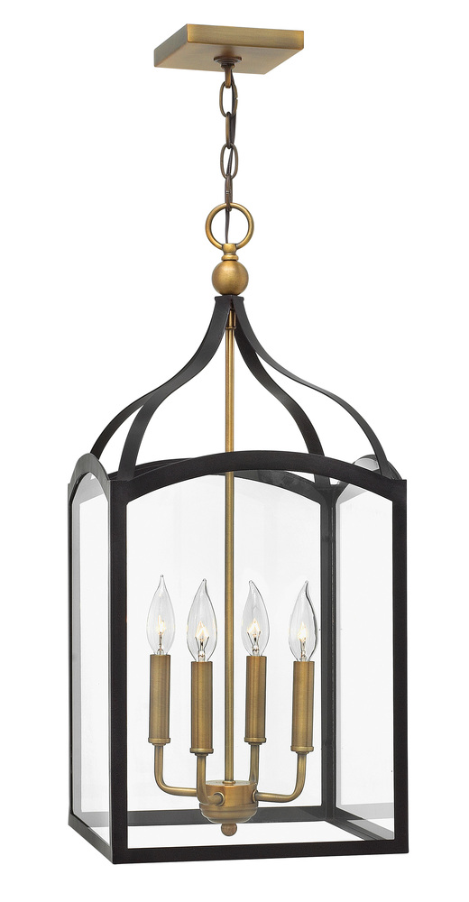 Clarendon is a classic four-sided foyer lantern group designed in an elegant two tone finish and constructed in forged iron with cast ball details and clear glass panels. Clarendon is updated tradition at its finest.