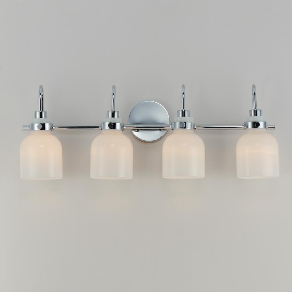 Celebrate nostalgia using these sconces that feature opal White glass shades in a bell shape. Supported on rings of metal in your choice of Polished Chrome or a bolder two-tone Black and Satin Brass, this refreshing take plays into a retro aesthetic of you