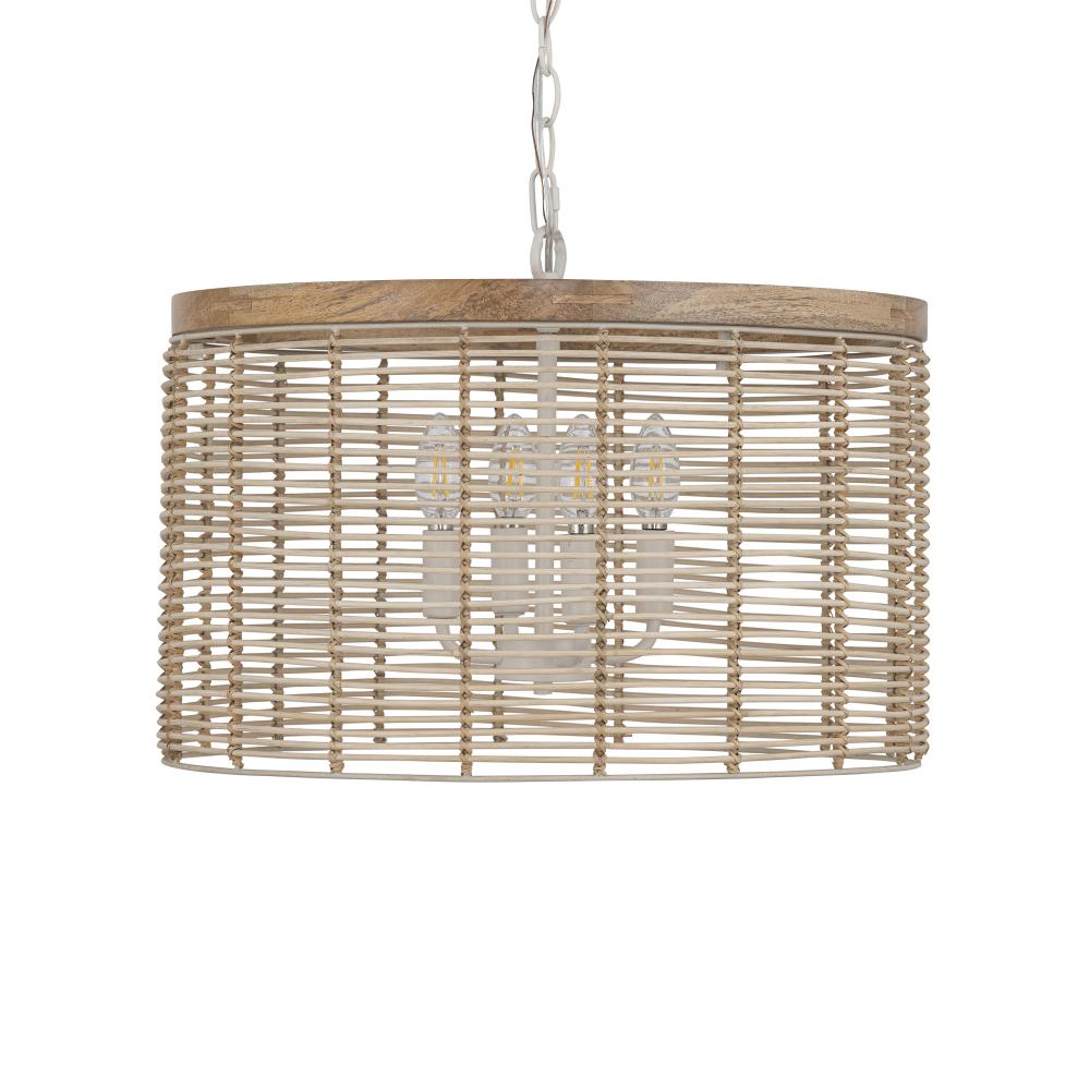Hand-woven artistry blends Natural Rattan shades with Weathered Wood accents. The Weathered Wood finish combined with natural materials and metalwork in an Ecru finish create a neutral palette that exudes casual luxury. These pendants pair perfectly with a